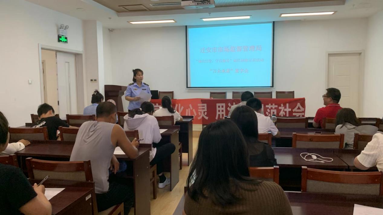 为进一步打造诚信经营氛围,优化营商环境,加强市场主体对诚信经营的认知和自觉性,引导其在经营过程中遵守道德规范、遵循法律法规,近日,迁安市市场监督管理局开展“万企承诺”诚信创建示范活动。