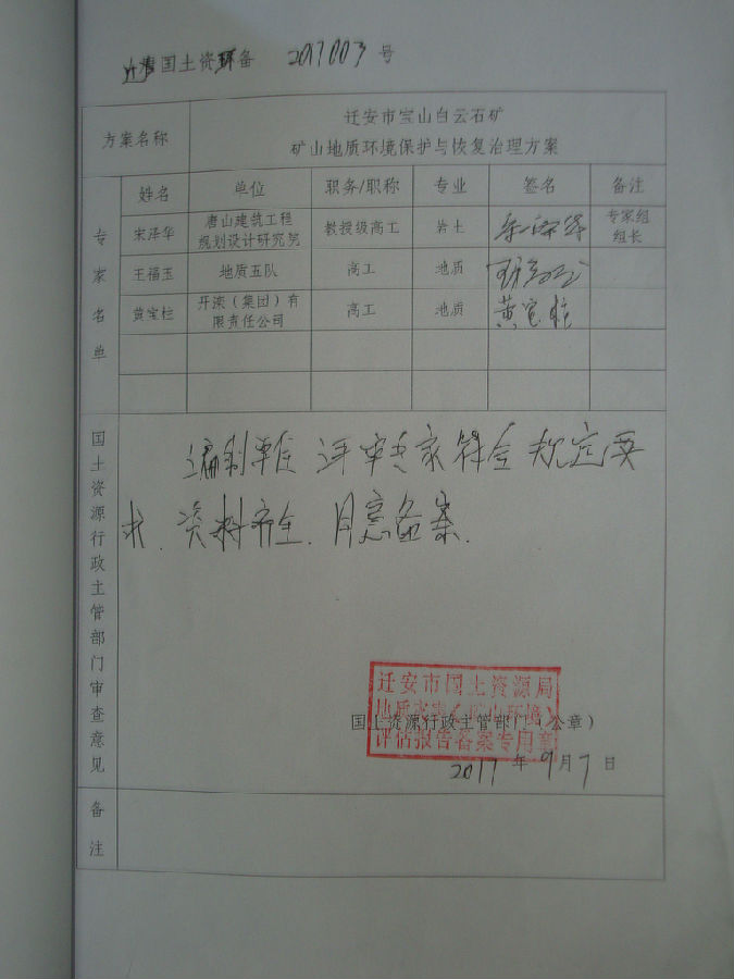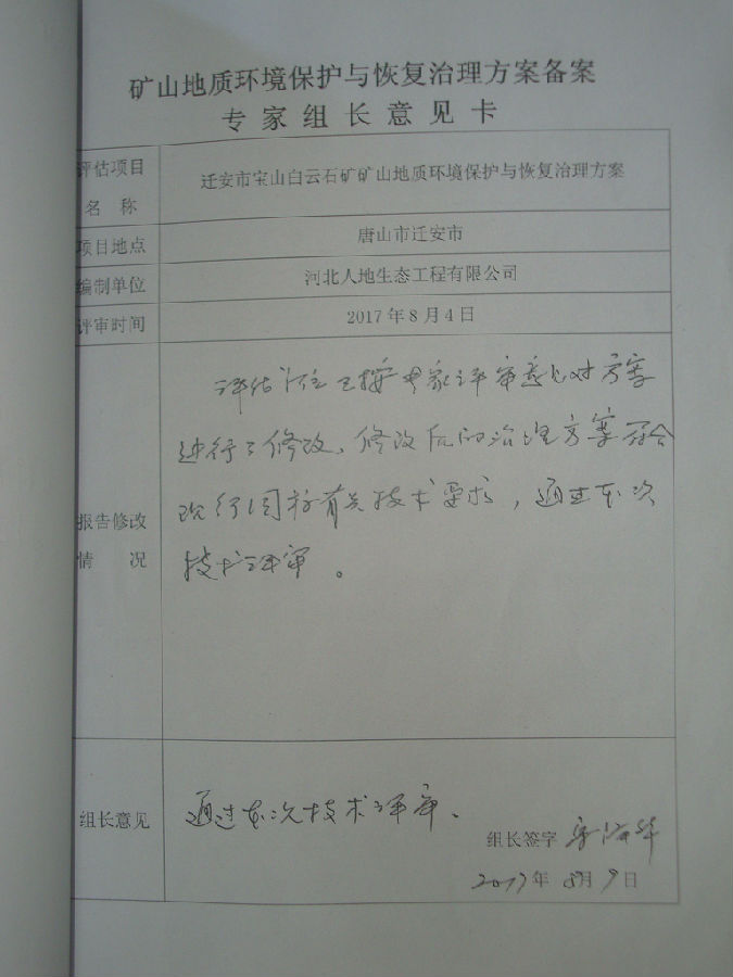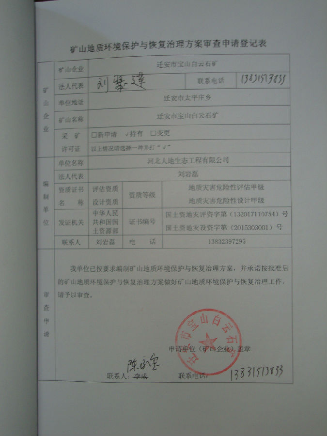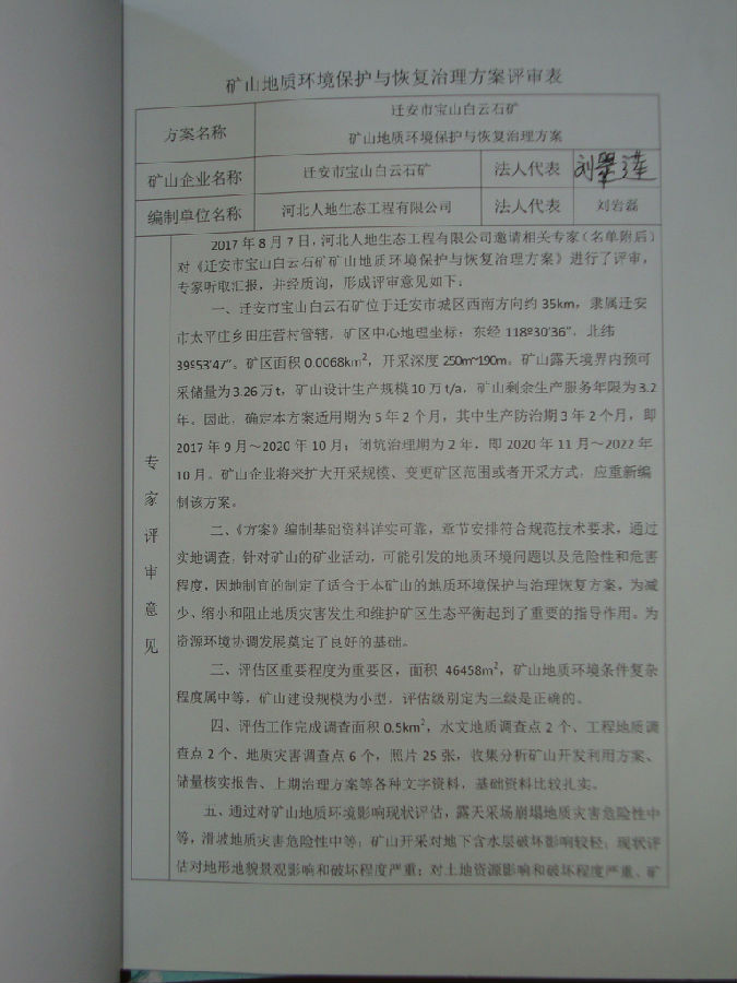 矿山地质环境保护与恢复治理方案(迁安市宝山白云石矿)