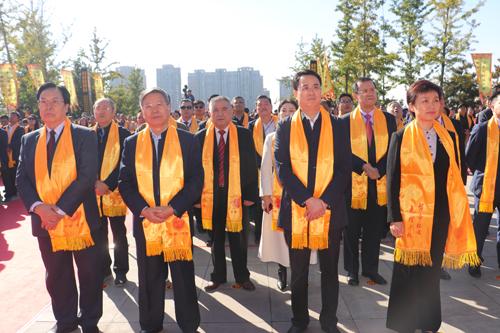 缅怀始祖,心怀敬仰。陈宗兴、徐光春、段惠军、张希清、张补旺、白春明、王震中、张淑云、韩国强等9位领导、专家分别在轩辕阁前敬献花篮。