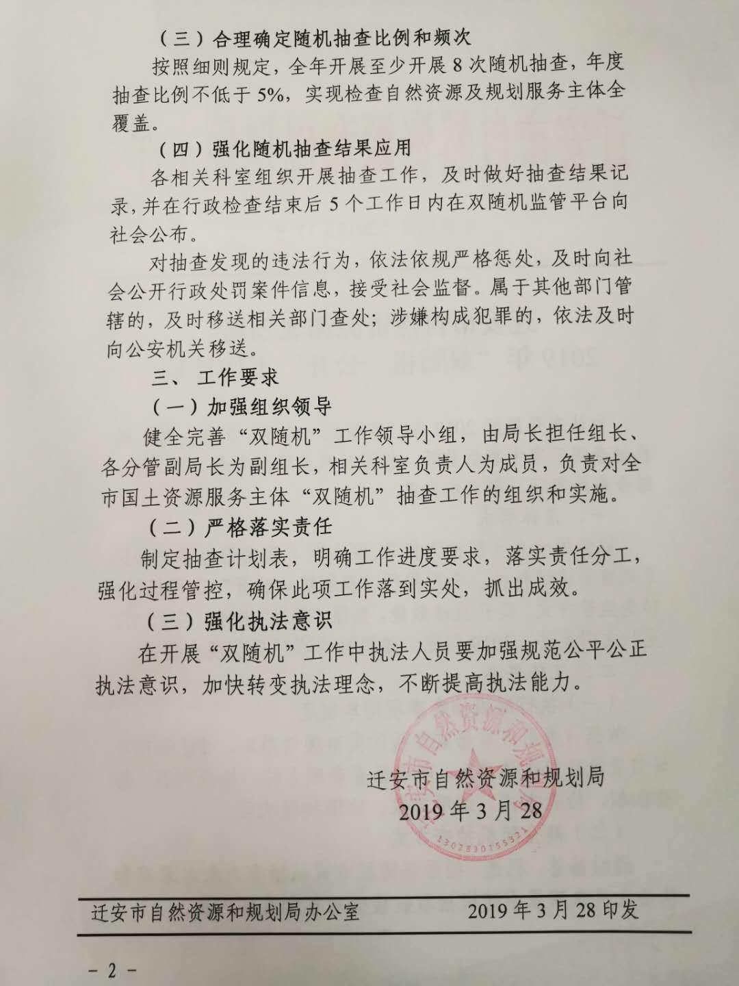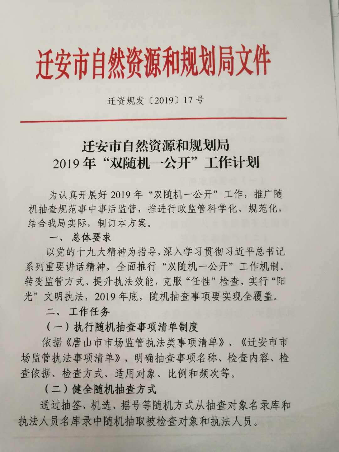 迁安市自然资源和规划局2019年“双随机一公开”工作计划