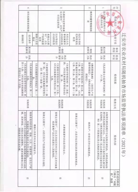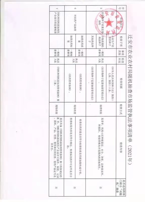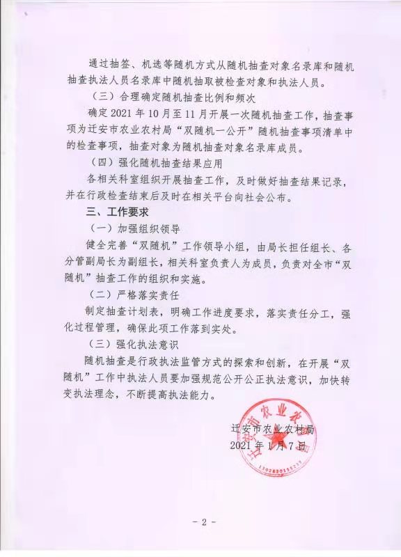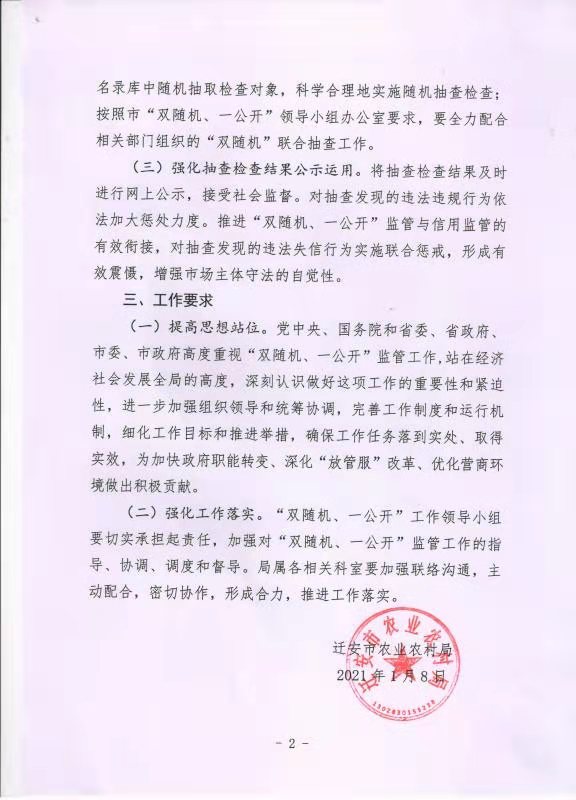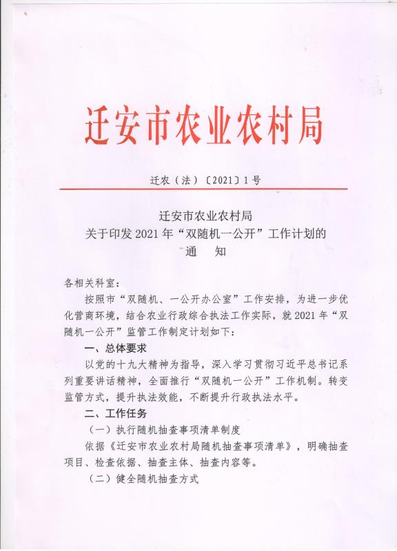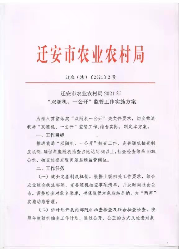 迁安市农业农村局双随机一公开工作计划、实施方案及监管事项清单