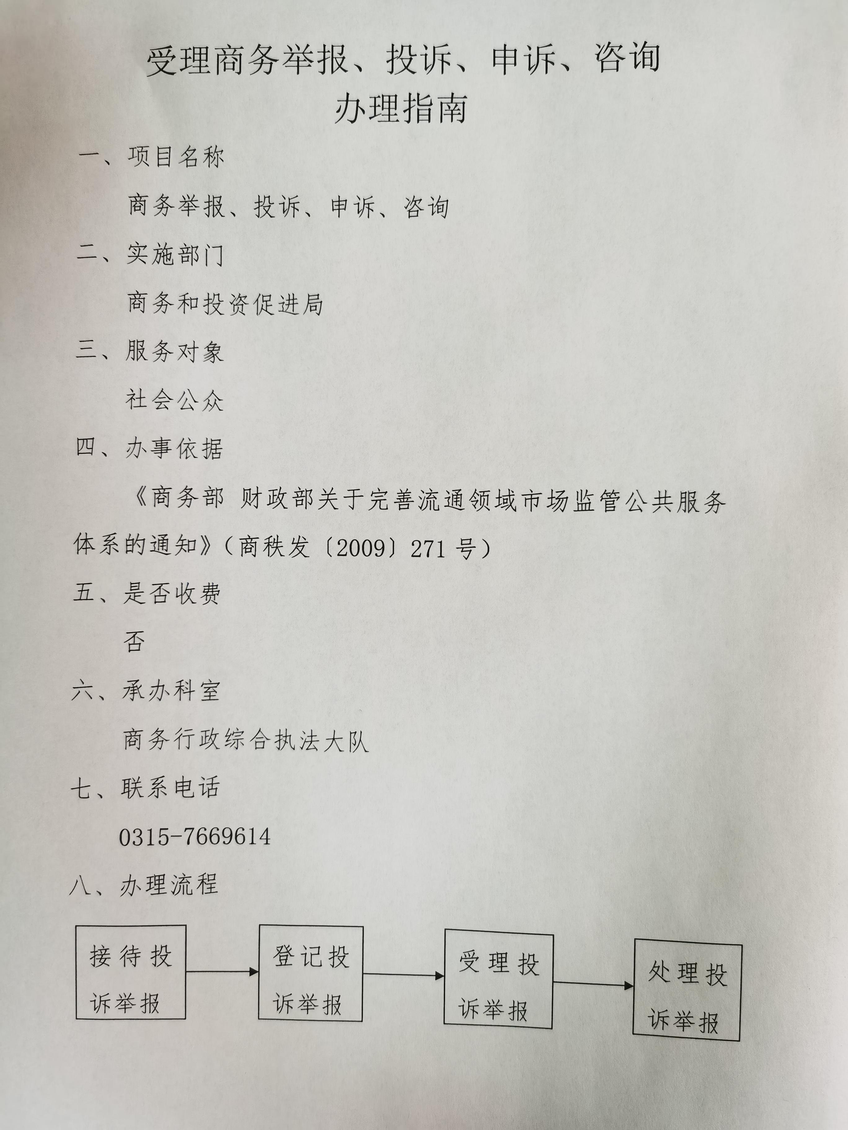 受理商务举报、投诉、申诉、咨询办理指南