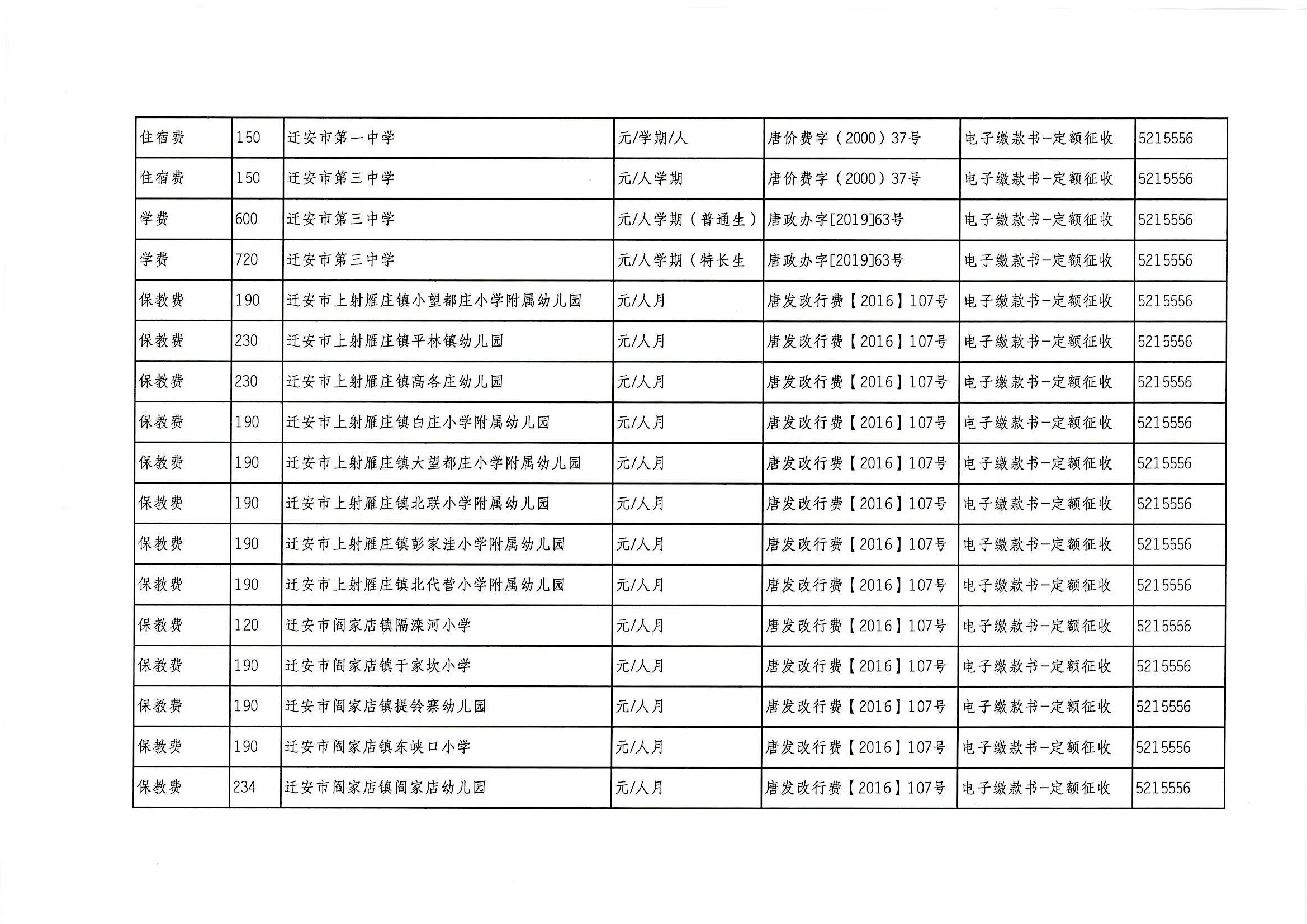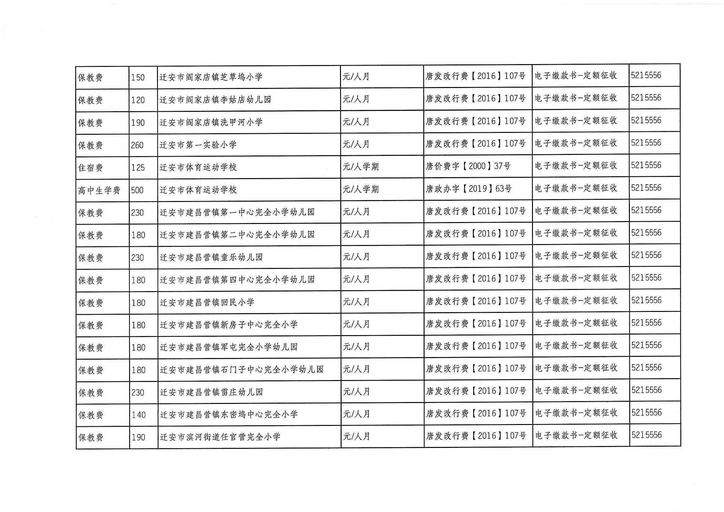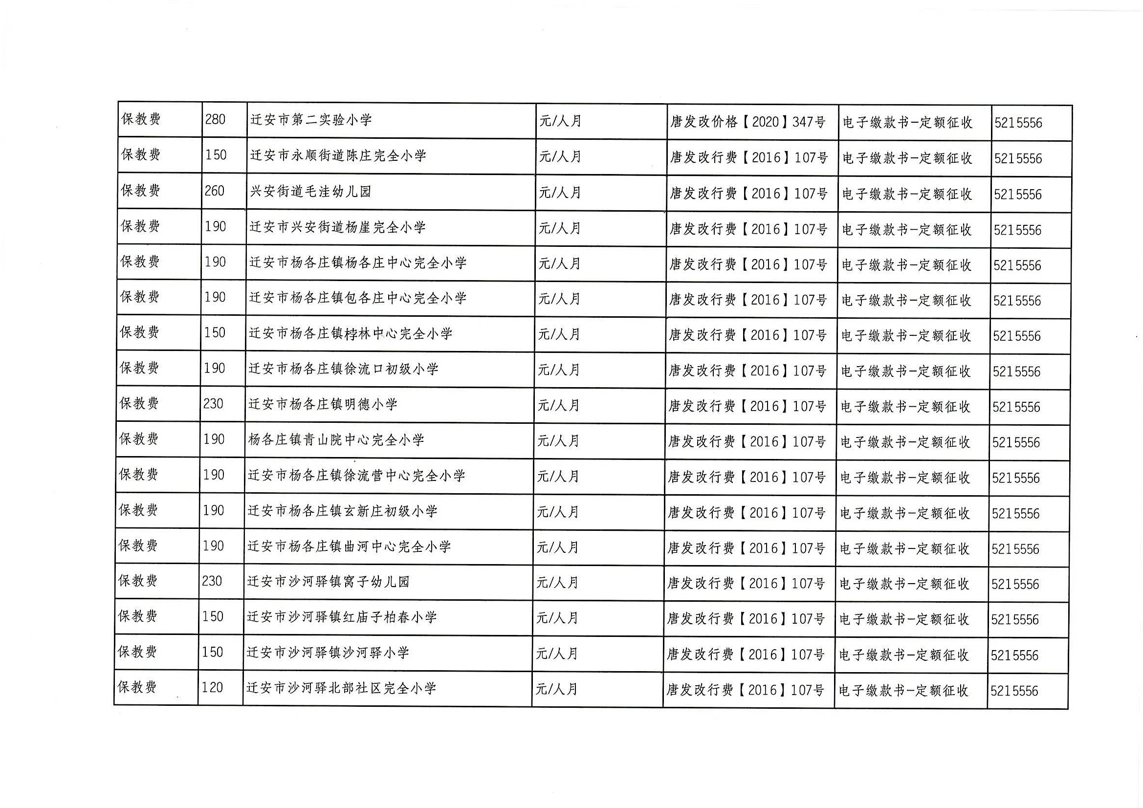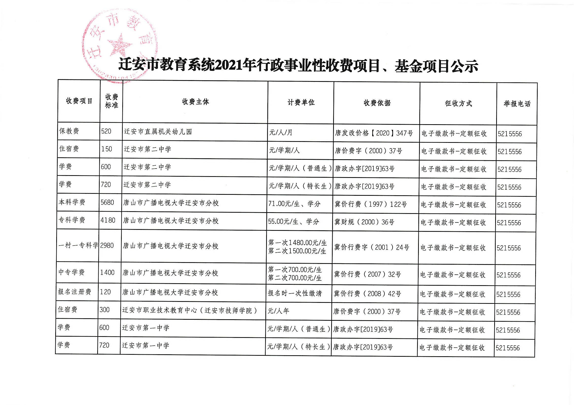 迁安市教育系统2021年行政事业性收费项目、基金项目公示