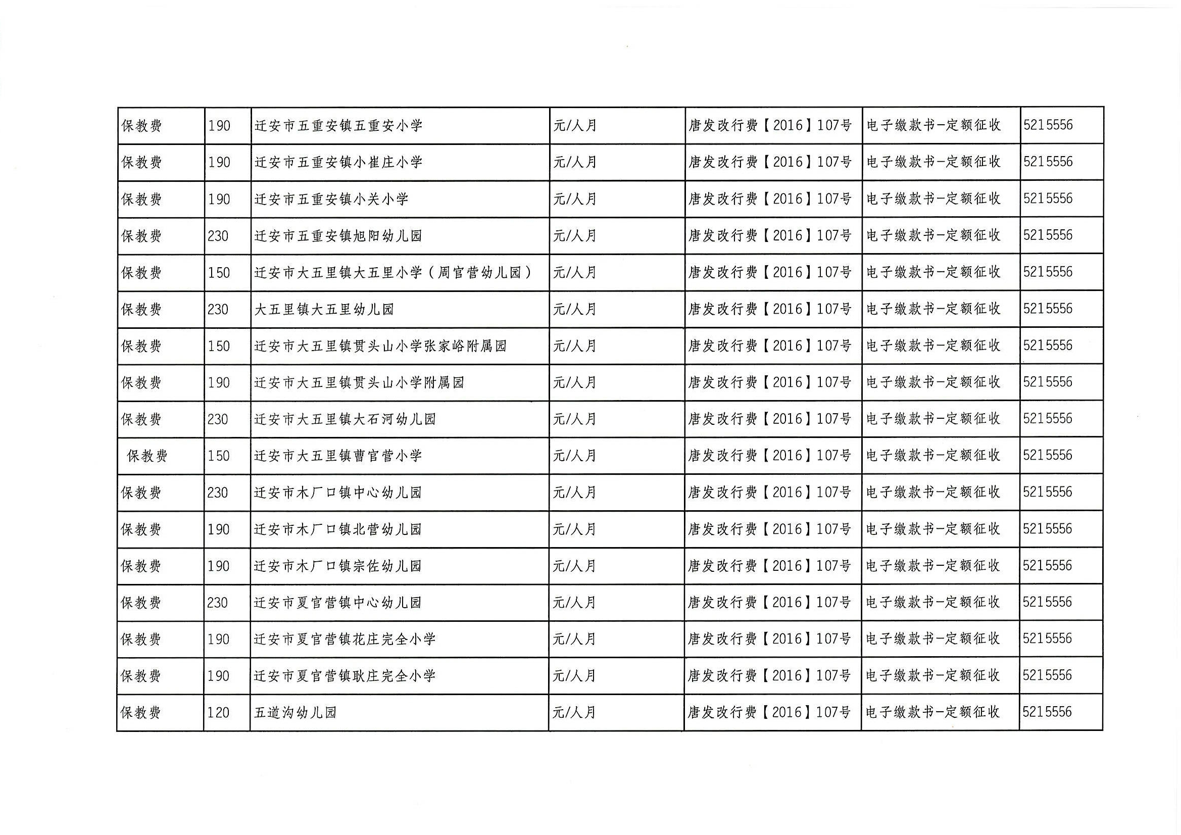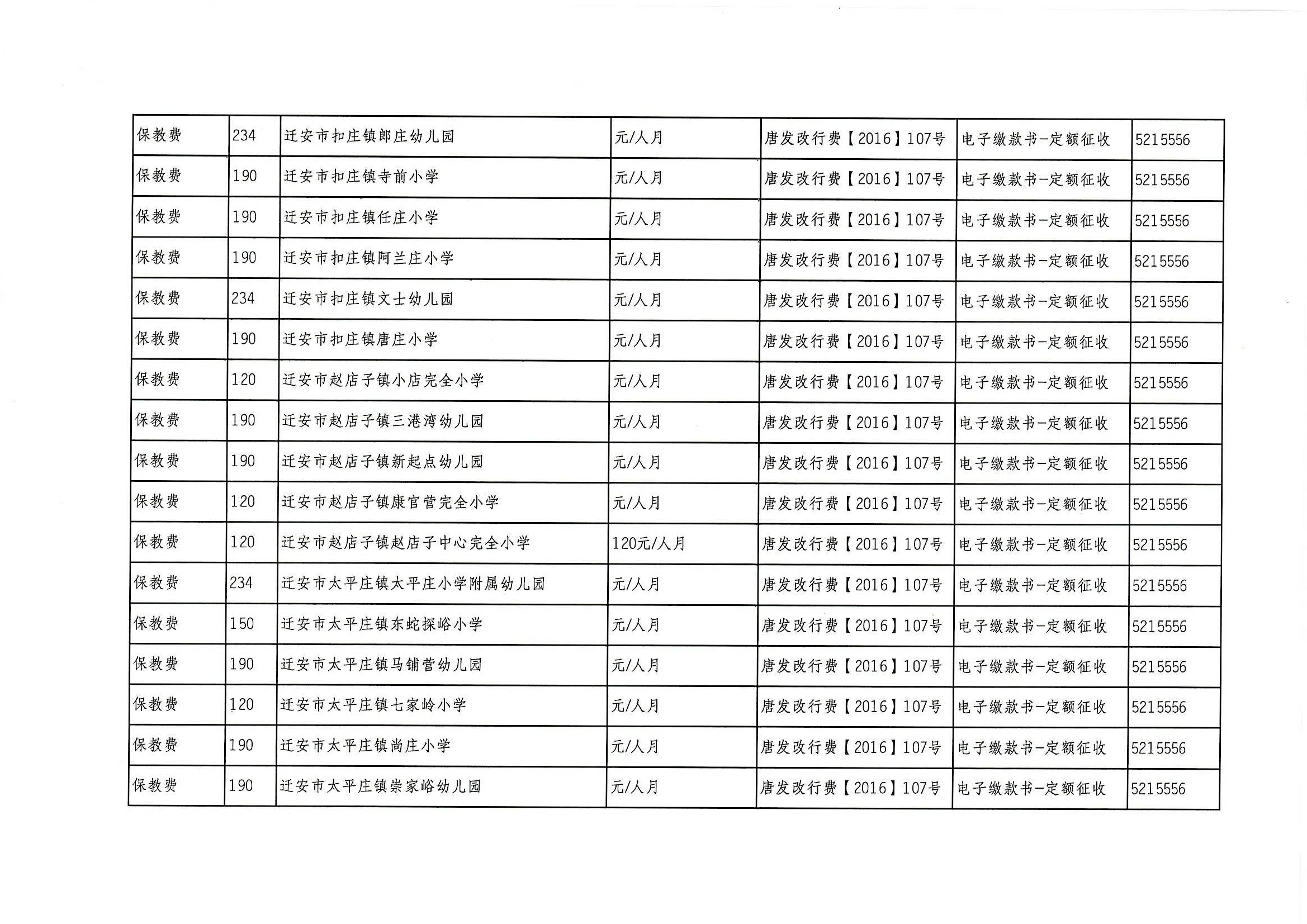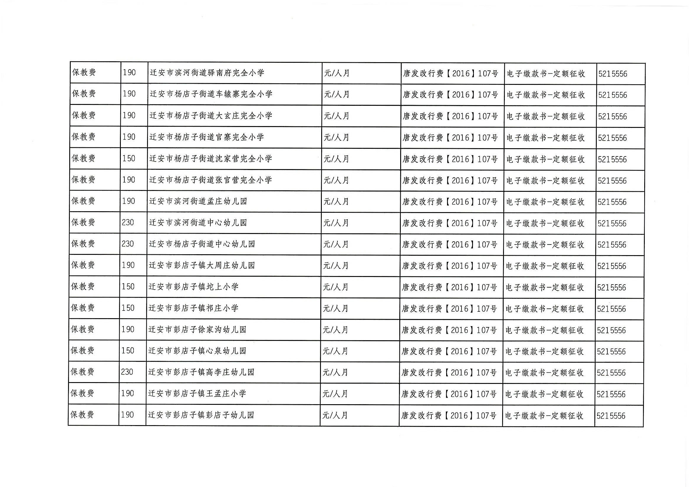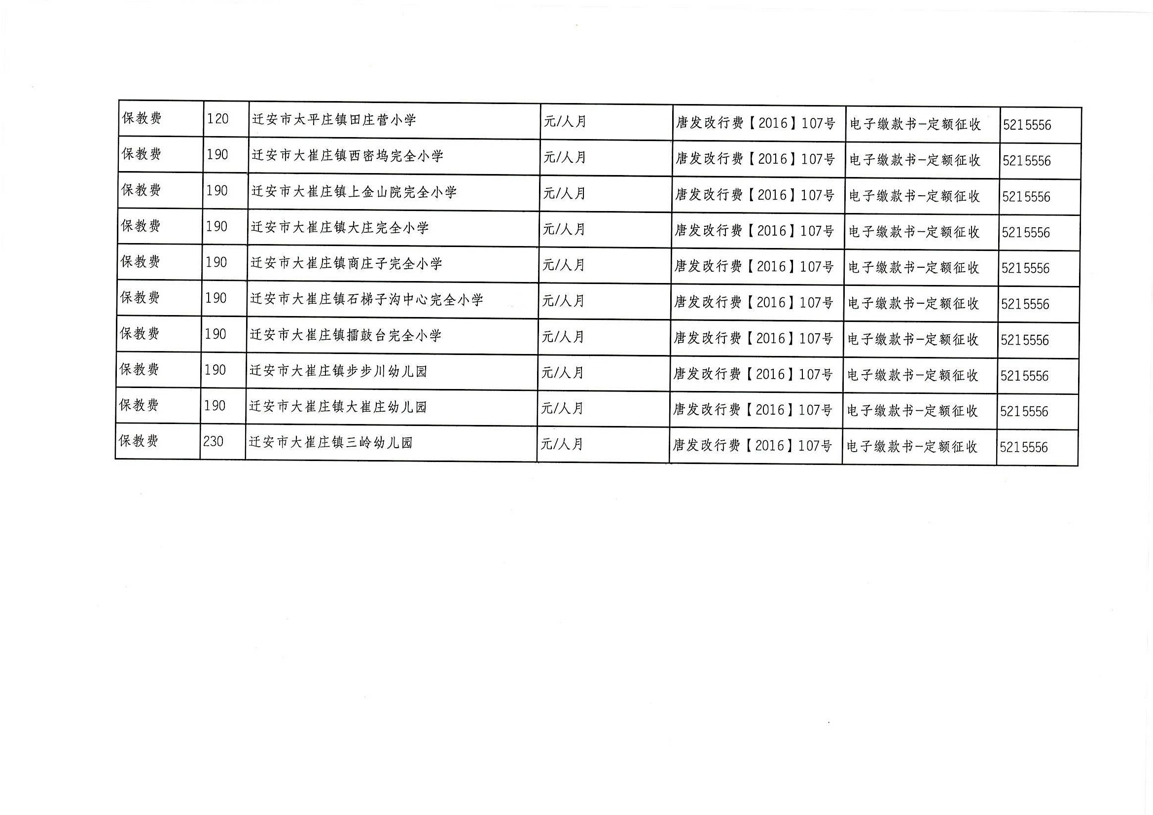 迁安市教育系统2021年行政事业性收费项目、基金项目公示