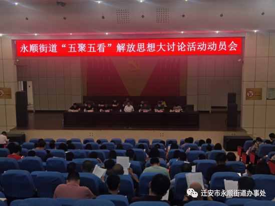 为深入贯彻落实习近平新时代中国特色社会主义思想和习近平总书记“七一”重要讲话精神,坚定不移落实好迁安市第七次党代会确定的“15678”基本思路,按照《中共迁安市委印发的<关于开展“五聚五看”解放思想大讨论活动的实施方案>”的通知》的安排部署,9月3日下午,永顺街道组织召开“五聚五看”解放思想大讨论活动动员会。会议由街道党工委书记张忠彦同志主持,领导班子成员、机关全体同志及各村居党支部书记参会。
