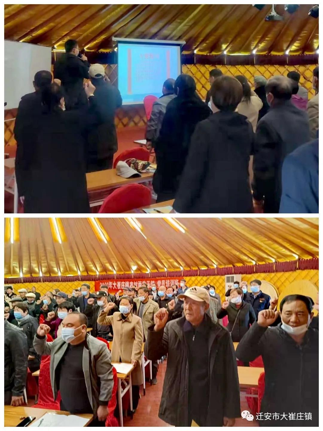 此次培训为期3天,主要围绕党史学习教育、理想信念教育、党员作用发挥等方面内容,旨在培养打造一批政治合格、信念坚定、纪律严明、素质过硬的党员干部队伍,为“北方水城、美丽迁安”建设和大崔庄镇高质量发展提供强有力的组织保障!
