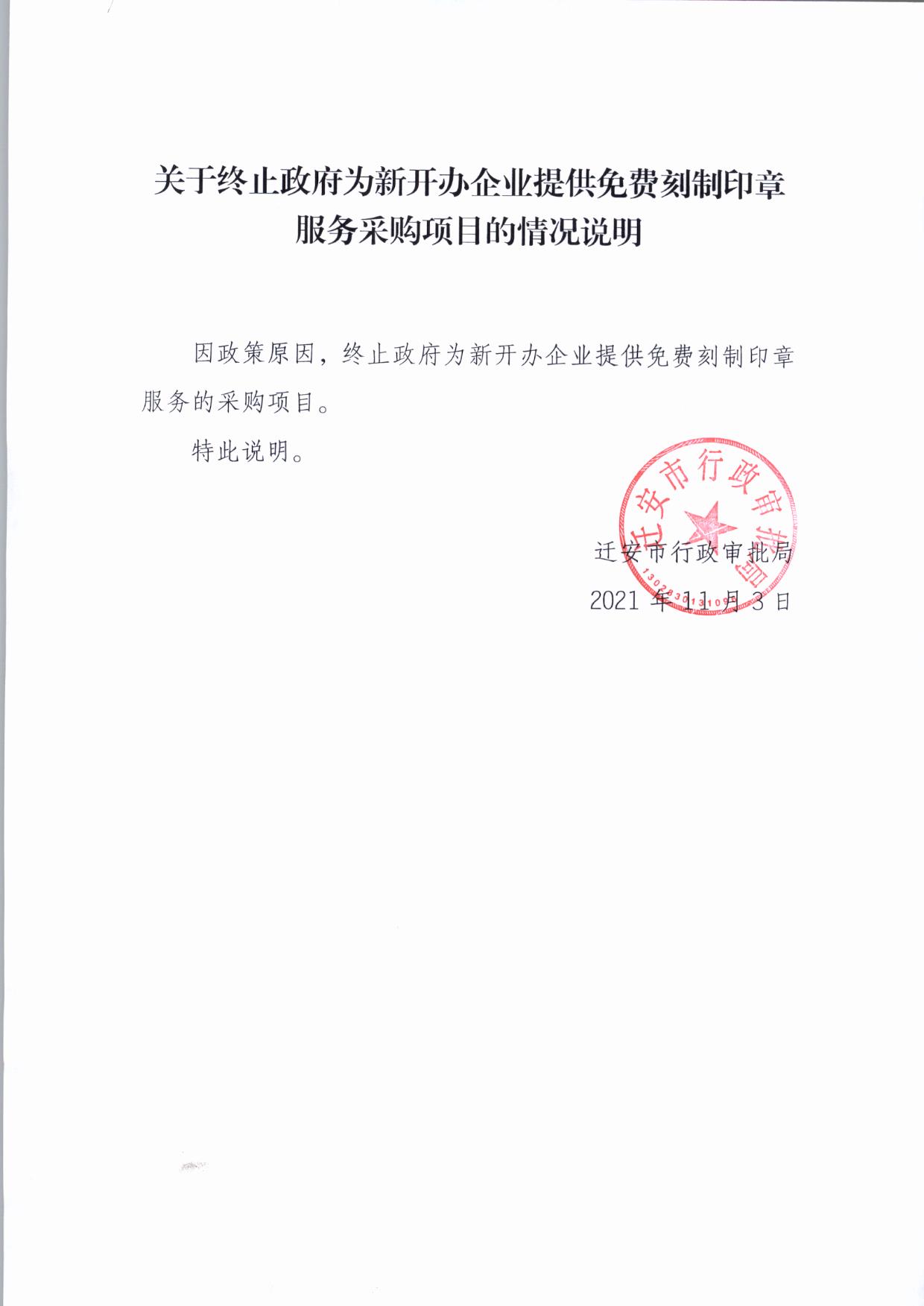 采购项目名称:迁安市行政审批局新开办企业首套印章刻制服务项目(二次)